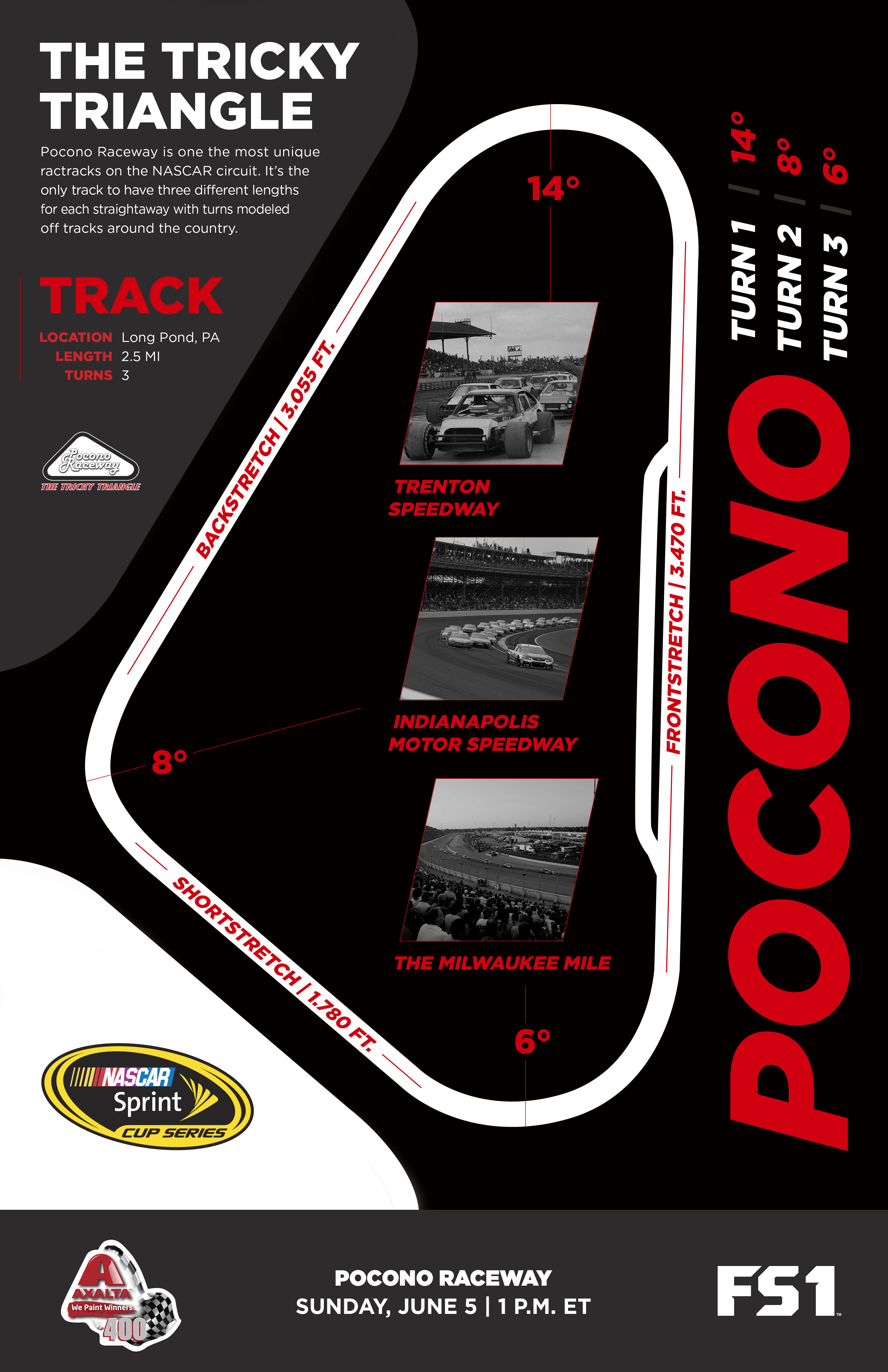 As the only track on the NASCAR circuit with three different lengths for each straightaway, Pocono stands out as one of the most distinct courses drivers try to tackle.